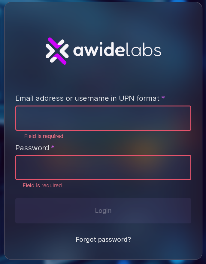 Type in the email address provided during the installation to the personnel responsible for installing Platform, in the text field “Email” (“Email address”).