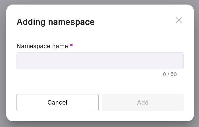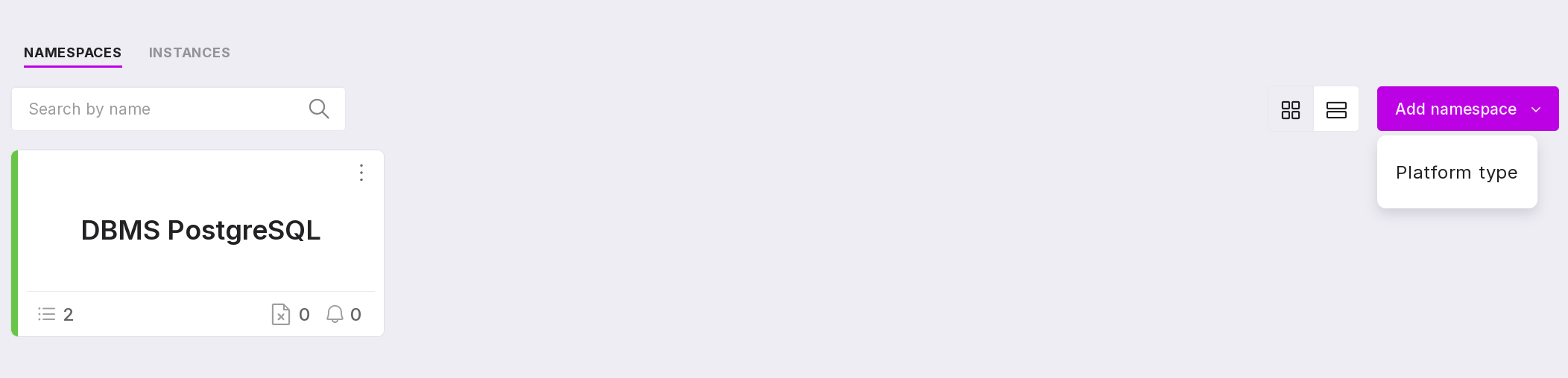 Go to the namespaces page, click the “Add namespace” button and select the type of namespace: Platform.