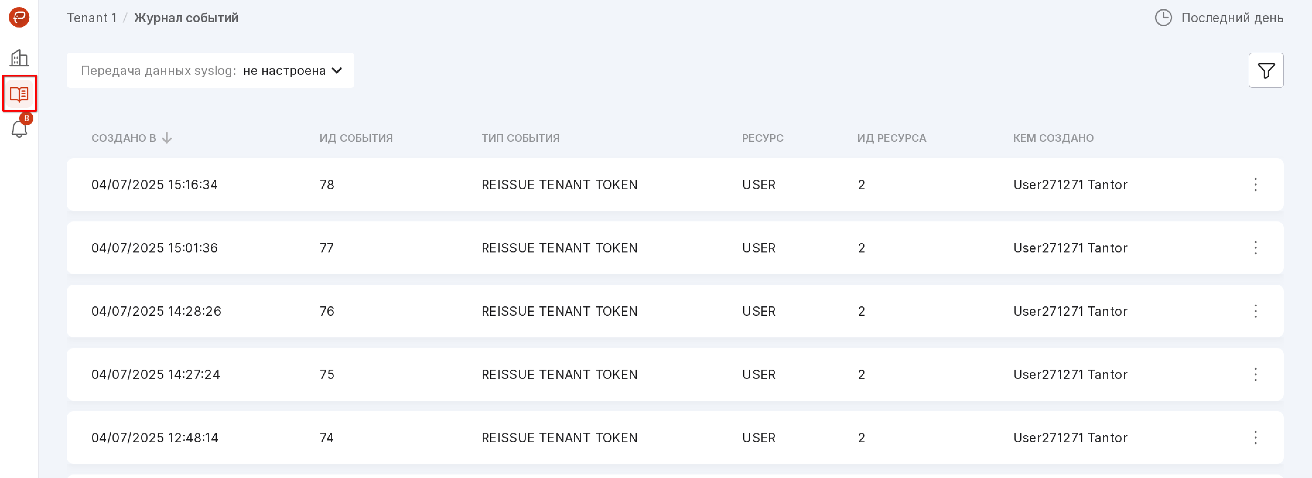 Data transfer is configured separately for each tenant. To configure event transfer, follow these steps: