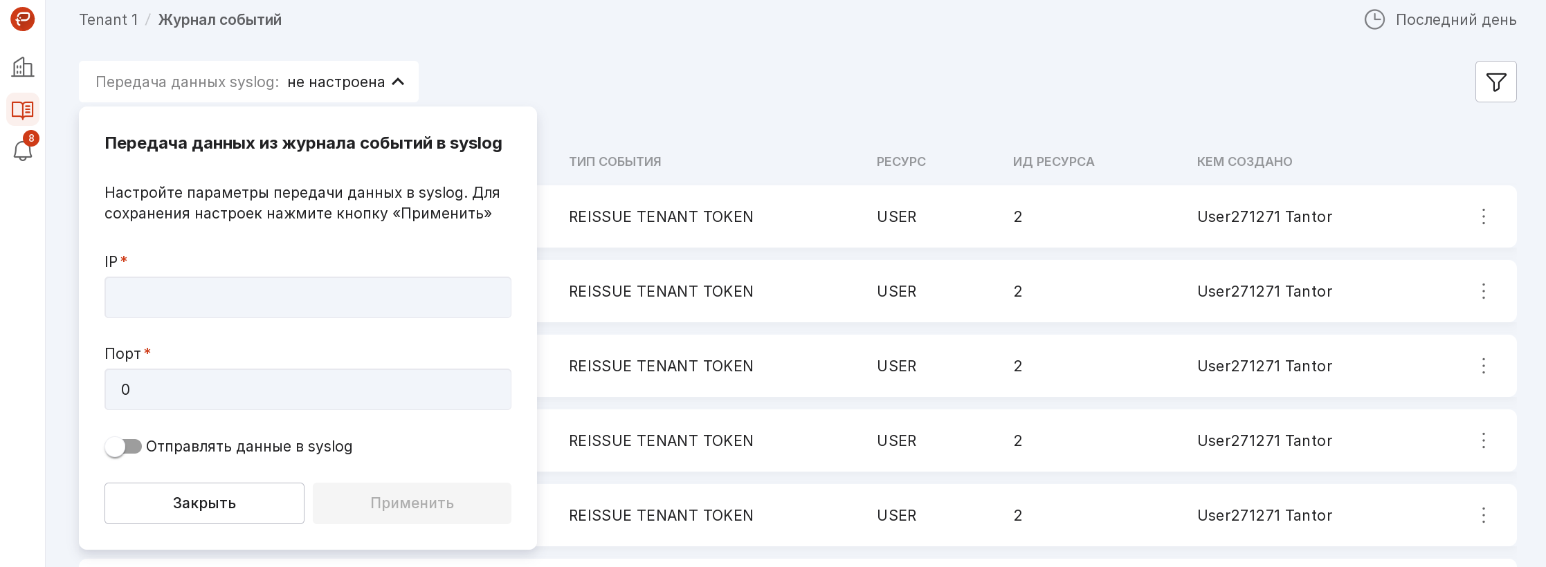 in the upper left corner, click on the line “Syslog data transfer”;