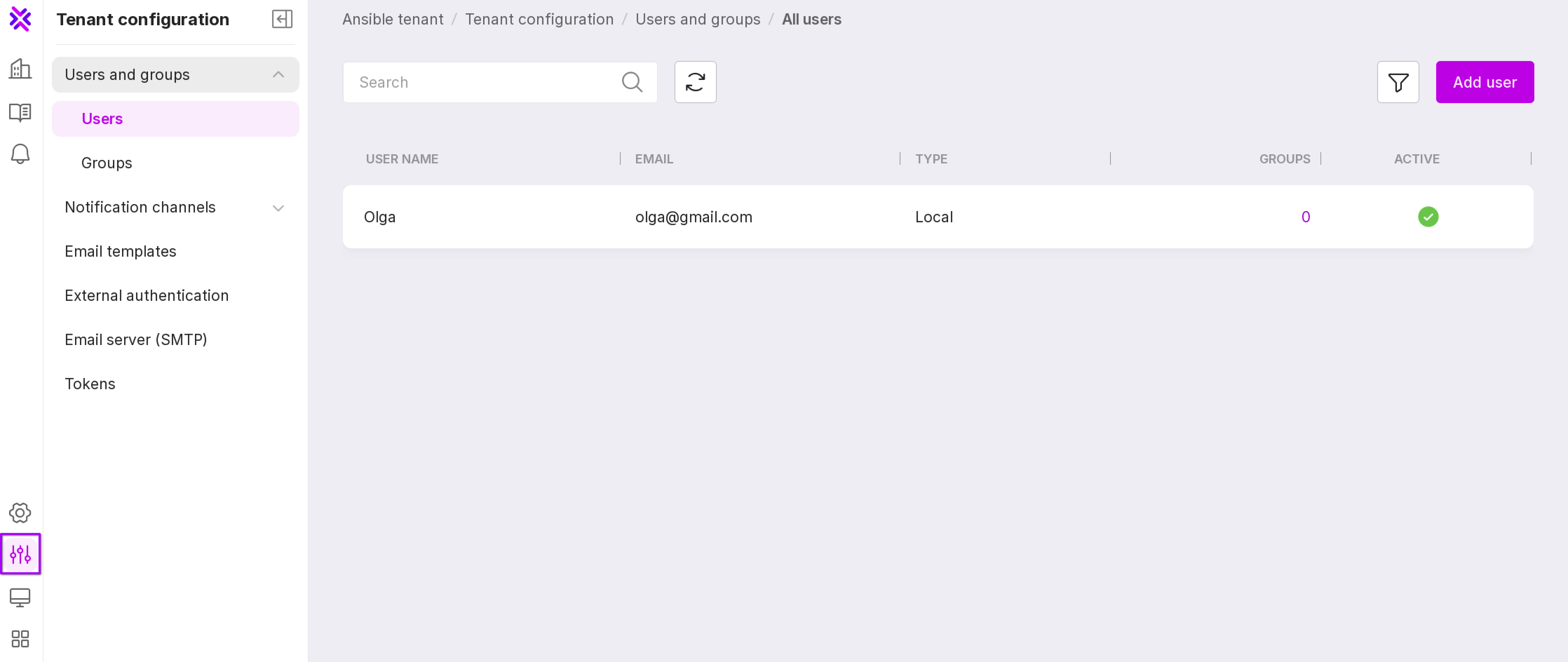 To go to the user management page, click “Tenant configuration” on the left panel.
