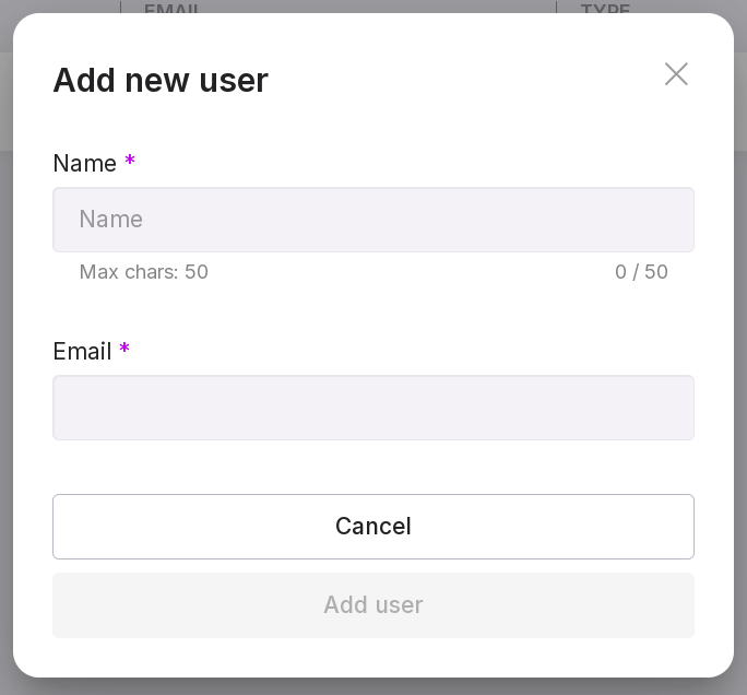 On the page user management, click “Add User”. A window will open for entering the new user’s data: