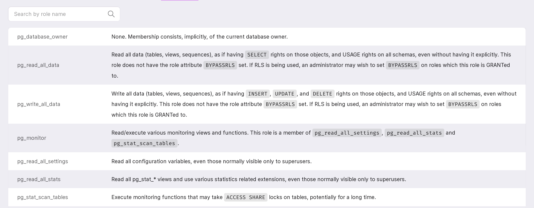 Roles can be searched by name.