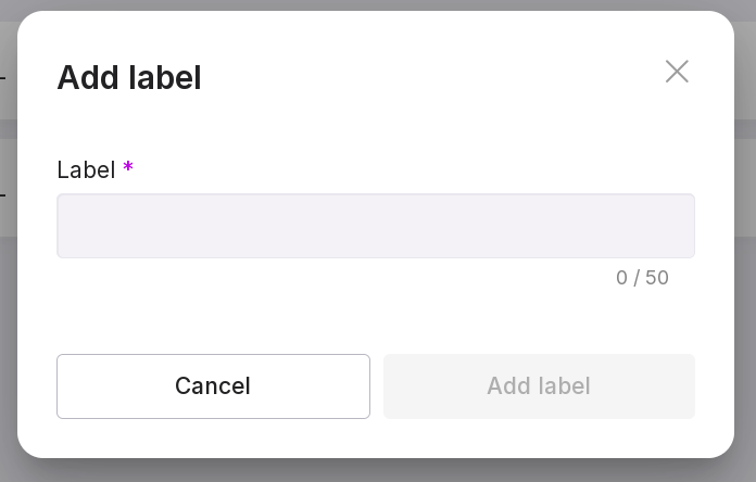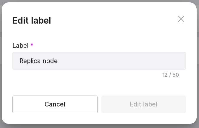 “Add label” — allows you to add a label or description to the instance to identify it. For example, “Primary” or “To be deleted”. In the opened modal window, enter the label in the text field and click on “Add label”.