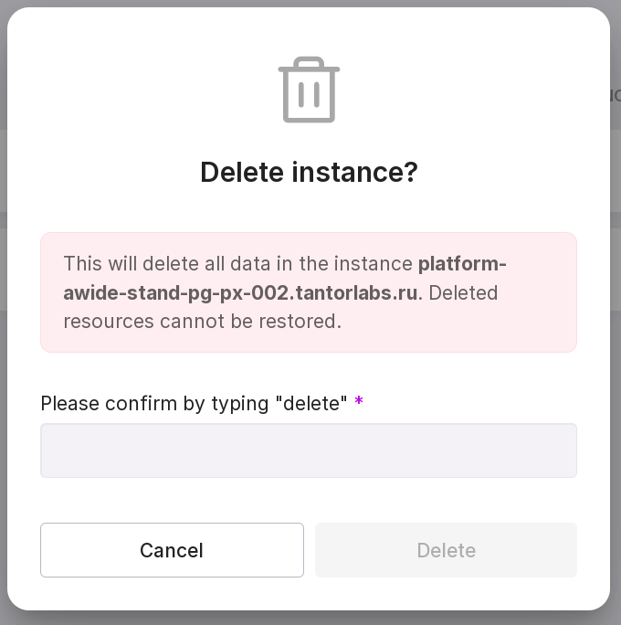 “Delete” — deletes the instance.