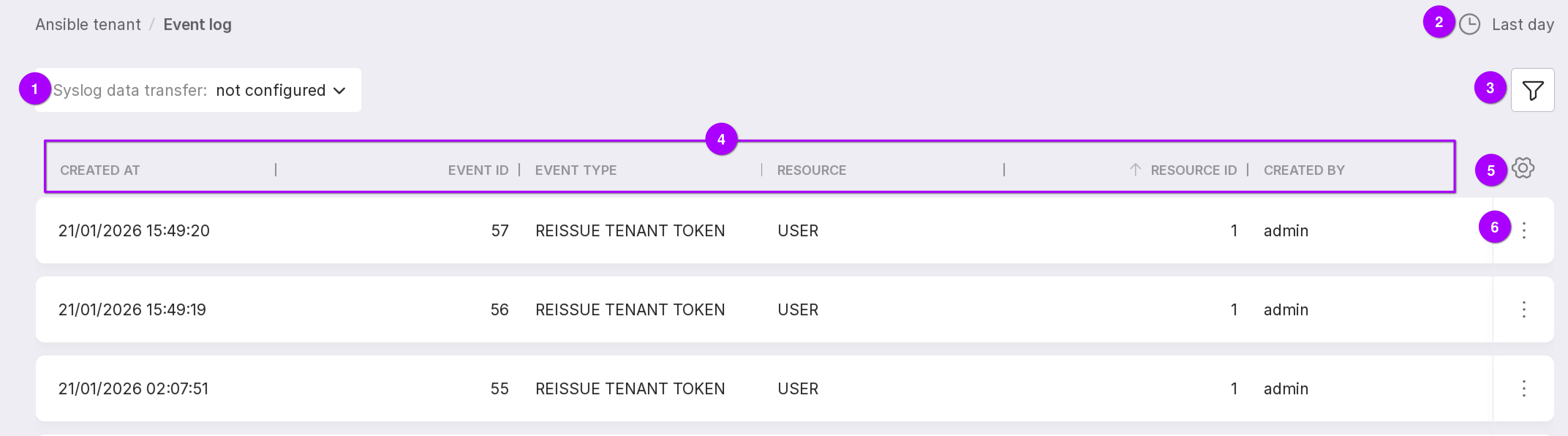 To go to the ‘Event Log’, click ‘Event Log’ button on the left panel.