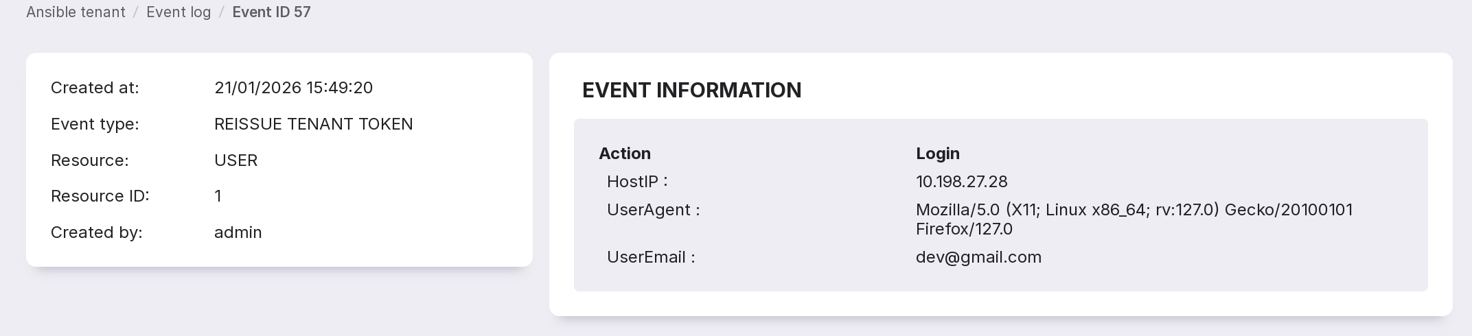 Event menu, which can be used to open more detailed information: HostIP, UserAgent, and UserEmail.
