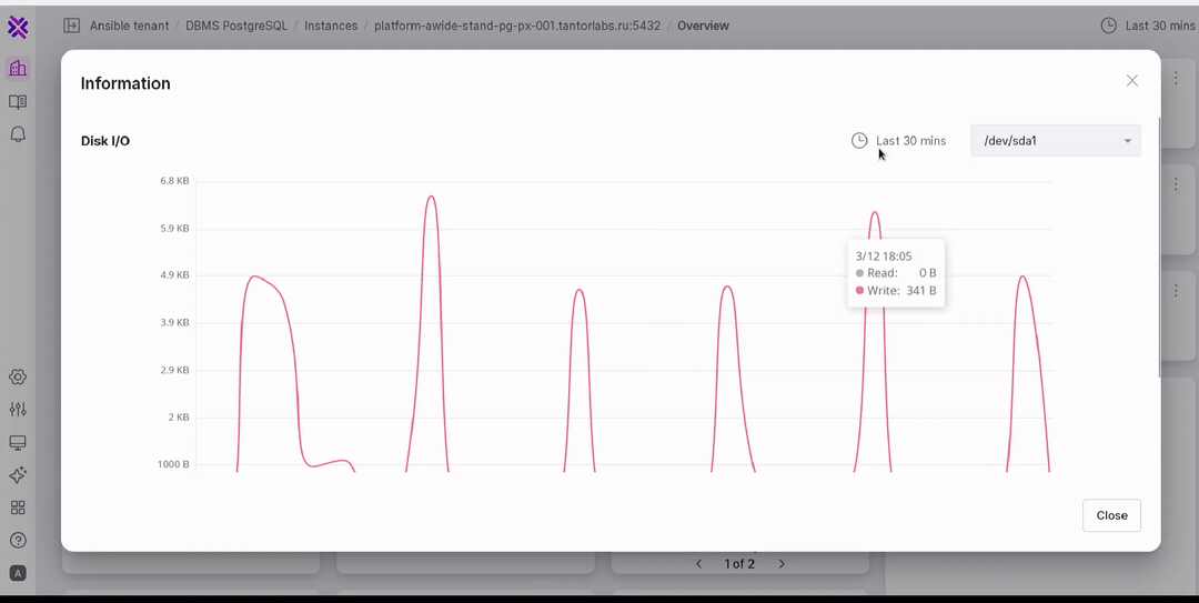 In the metric chart Tile, you can specify a specific date and select a time interval for displaying information. Seven time intervals are available: