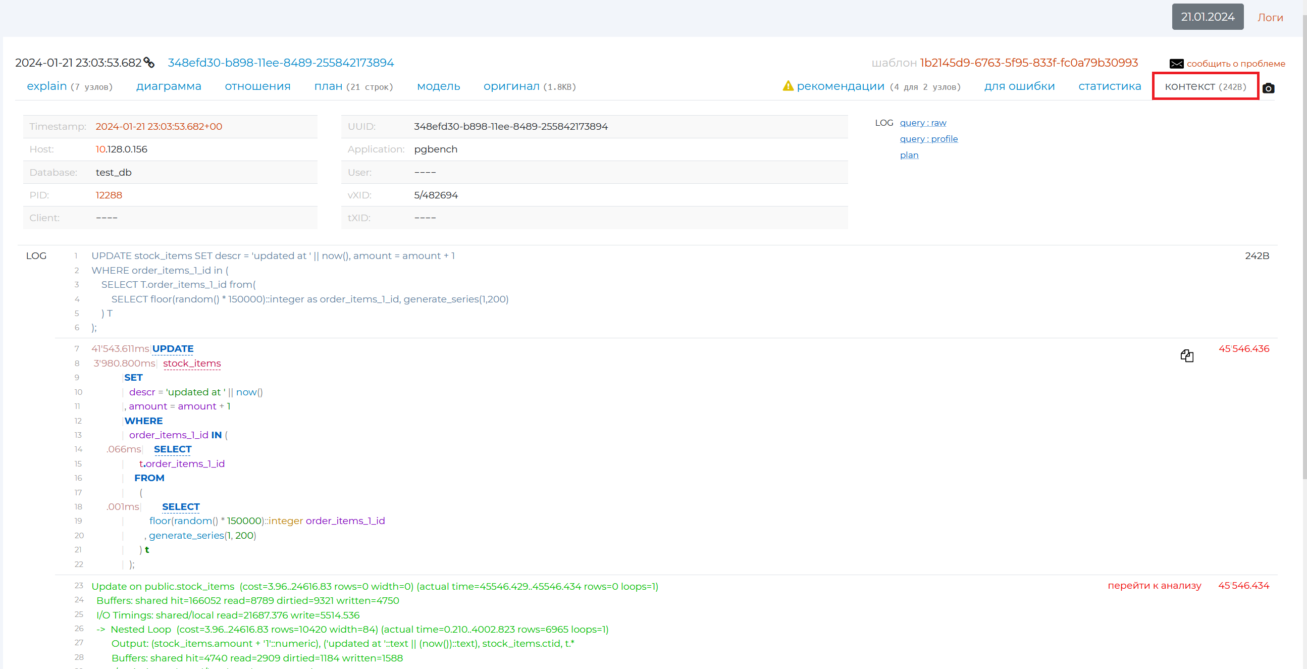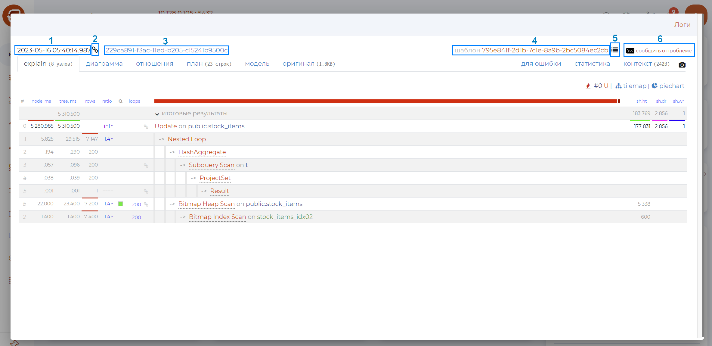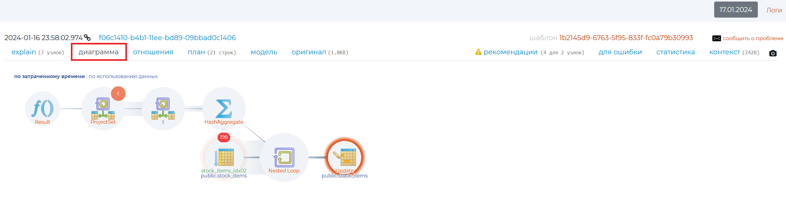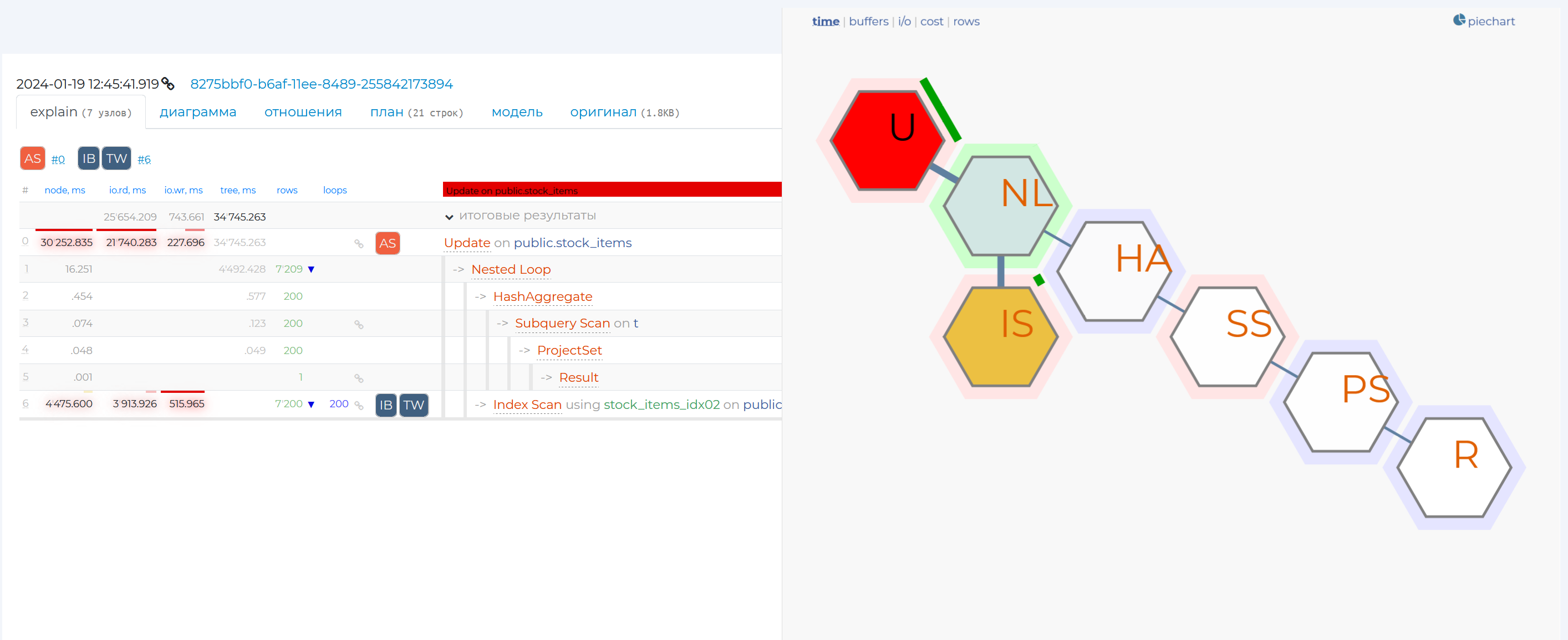 The “Plan” tab contains the same plan as the “original” tab, only in a more visual form: overloading punctuation marks can disappear, the names of each plan node are highlighted.
