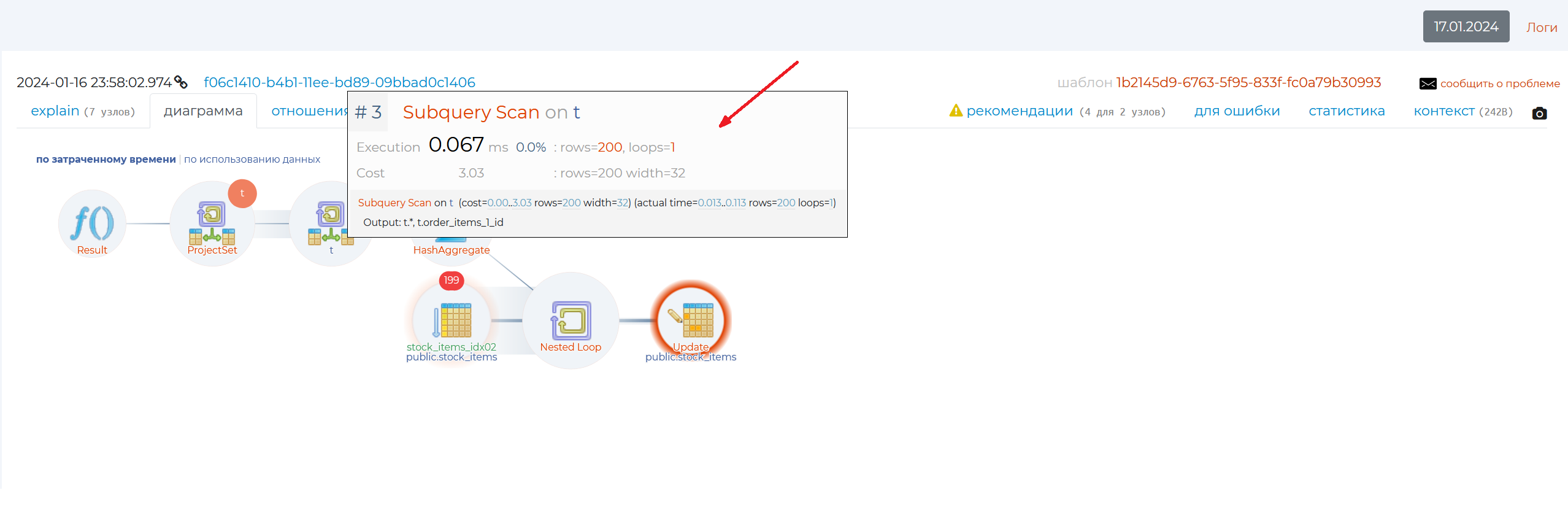 actual time — total execution time of the node together with its “children”. If the number of repeats of a given wraparounds node is greater than 1, then in order to find out the total execution time of this node together with its child nodes, we need to multiply the actual time by the number of wraparounds;