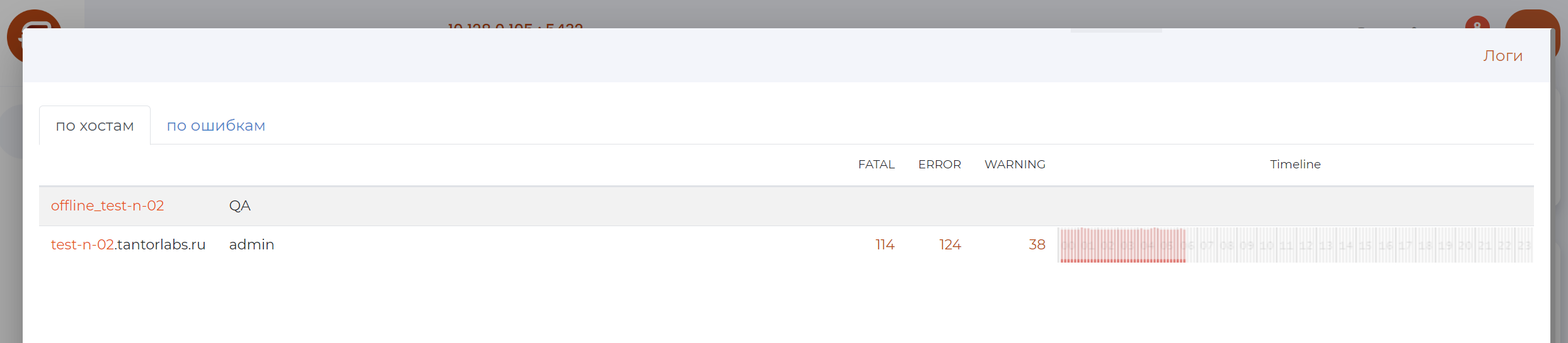 By Hosts — displays a list of hosts and the number of errors of each type (FATAL/ERROR/WARNING) for the corresponding hosts.