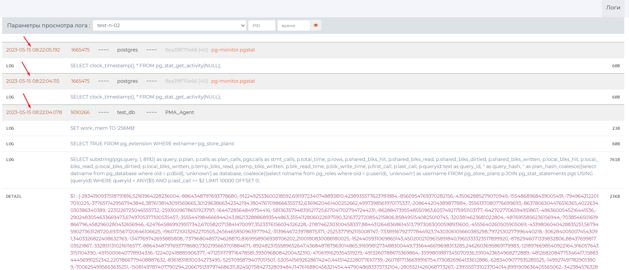 With this section, you can monitor queries by PID, host, or a combination of both, taking into account the time filter.