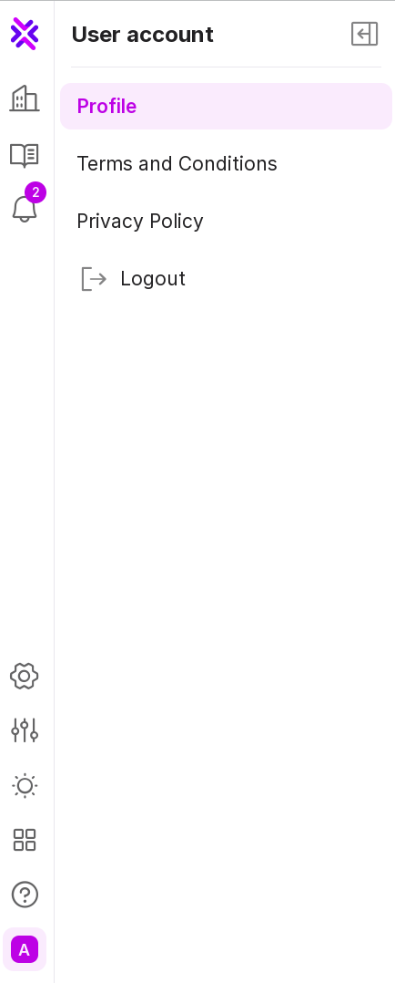Account — opens the panel with the following options: